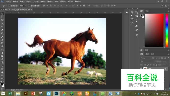 打开PS界面,新建文档,将骏马照片素材拖进当前文档当中去,如下图所示: