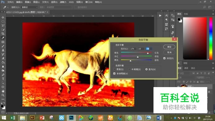 本实例通过“反相”命令反转图像的颜色后,使用“色彩平衡”命令,分别调整图像的阴影、中间调和高光,加重每个色调中红色和黄色成分,最终打造出燃烧中烈浆中的鲜红色调,完成制作。
