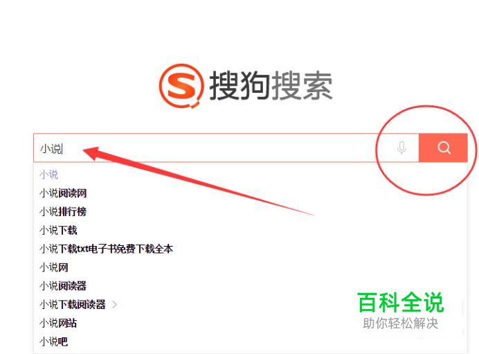 首先我们打开搜狗浏览器,输入“小说”的关键词(如图所示)。