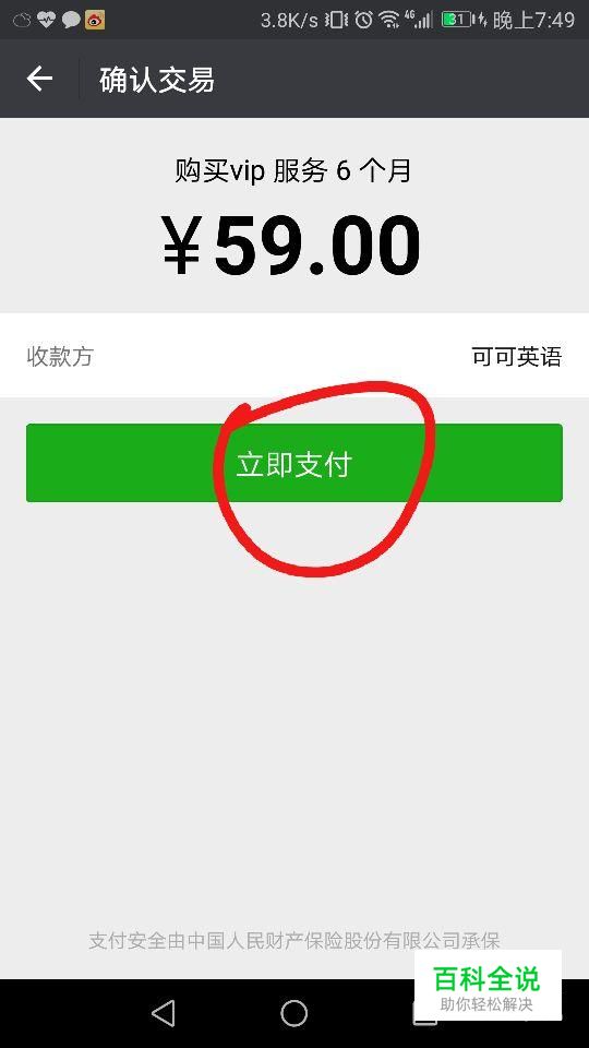 最后只需要输入支付密码即可开通可可英语会员,如图所示。