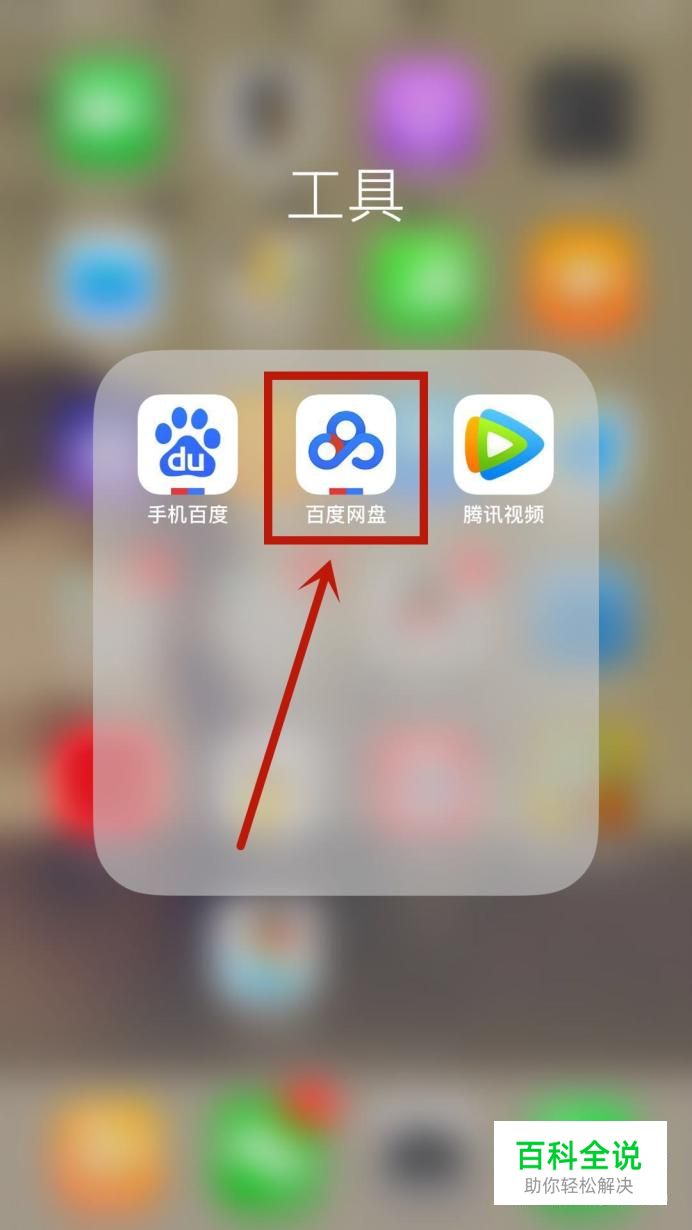 首先在手机桌面上找到“手机百度网盘”APP,并点击登入,如下图所示。