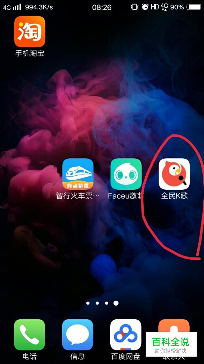 首先在手里中找到全民K歌这个软件,然后打开。