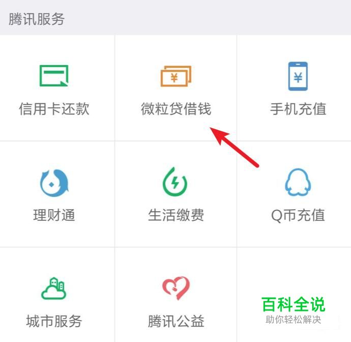 钱包页面,点击‘微粒贷借钱’