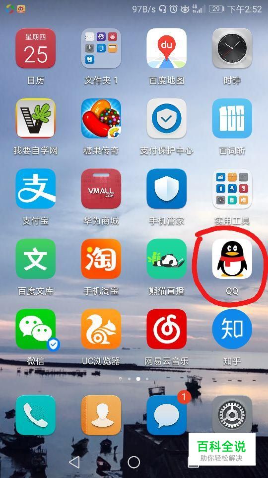 首先点击手机屏幕中的“QQ”,如图所示。