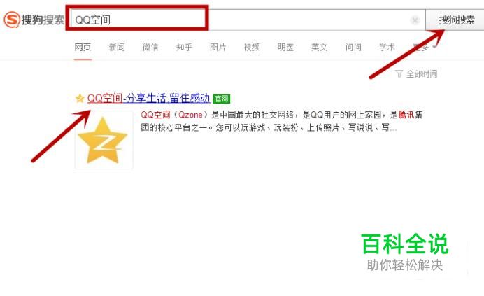 首先我们浏览器中搜搜QQ空间,点击QQ空间的地址进入,如图所示。