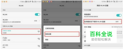 WiFi提速第二招: 把手机设置成始终连接WLAN。在WLAN——菜单——高级设置——在休眠状态下保持WLAN连接,始终选择即可。