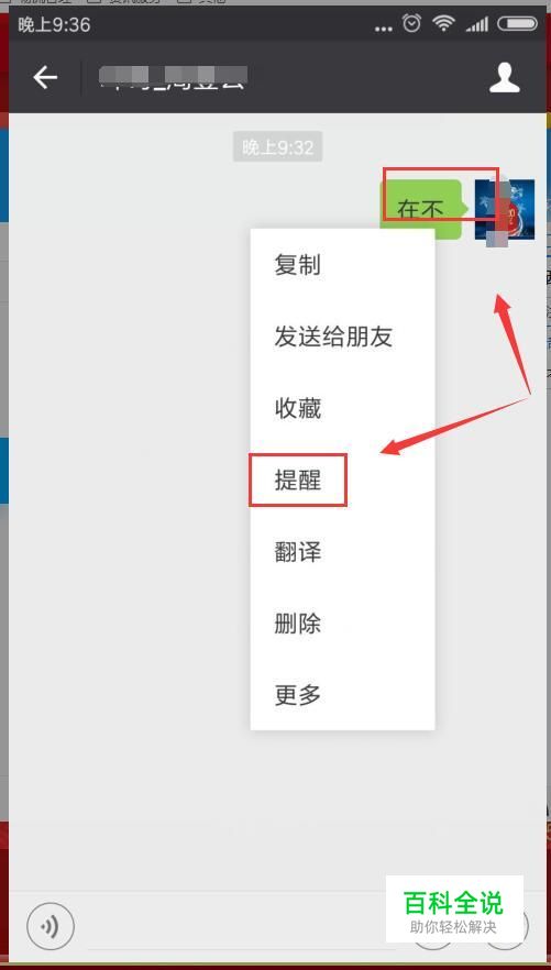 点击打开后,这时找到需要提醒的聊天内容,按住不放会出现一个下拉列表,并点击列表菜单里面的“提醒”按钮,进行提醒设置。
