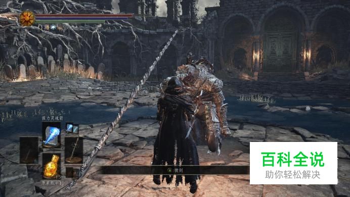将英雄古达雕像身上的螺旋剑拔出,英雄古达就会开始活动攻击玩家,英雄古达站起来需要一定的时间,在此时间内,我们可以非常安全的攻击。