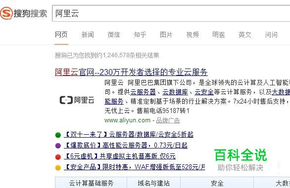 首先在搜狗浏览器中搜索阿里云的官网,也可以在地址栏输入www.aliyun.com进入