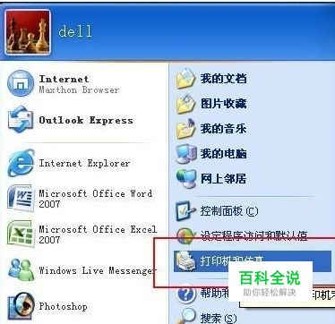 在带有打印机的电脑上进行以下操作: 进入开始----直接找到打印机和传真,直接进入即可,如下图: (如果在开始菜单中没有找到“打印机和传真”入口,可以进入 开始--设置---控制面板 中找到)