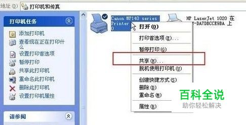 之后在打印机上由键单击 -- 选择 共享 如上图.之后进入如下打印机共享操作界面。