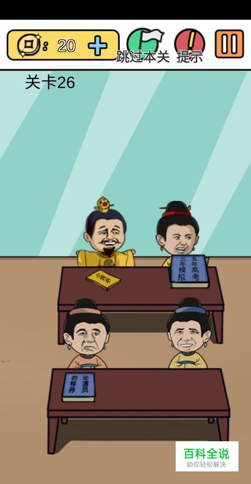 第26关将三年模拟五年高考这本书拖动到半月电脑上就过关了。