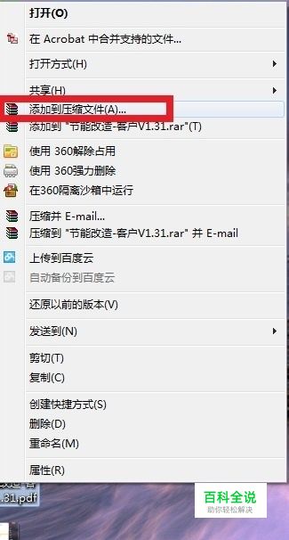 首先你的电脑必须安装有Winrar这个软件。在你需要压缩加密的文件上点击右键--添加到压缩文件。。。
