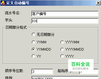 .点击“确定”,完成“客户编号”的定义。