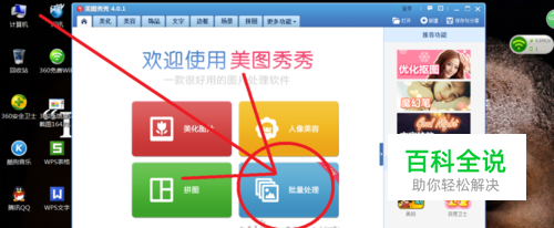 打开美图秀秀后,你会发现界面里有一个“批量处理”的一栏。点击之后,美图秀秀的“批量处理”就会被下载的。下载成功后,就可以用“批量处理"解决问题了。如图所示: