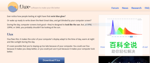 首先推荐第一种便宜,使用简单的防蓝光软件f.lux.可以在网上搜索之后免费下载,下面是下载界面。