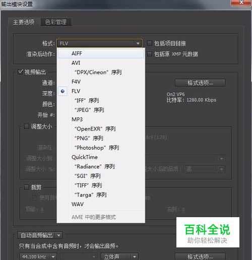 在弹出 首选项 窗口 选择输出 勾选 【在输出模块设置中显示丢弃的格式】
