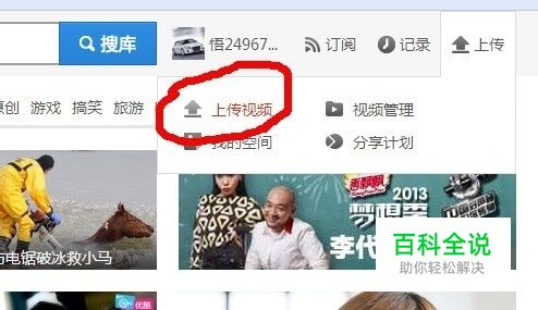 登录后,点右上角的上传,然后鼠标指针移向“上传视频”。点击“上传视频”,在新的网面上,再点“上传视频”接下来就可以在电脑里选择要上传的视频,将视频上传,视频的大小不同,所花的时间不同。在上传期间,我们可以填写视频信息。最后点“确定”。