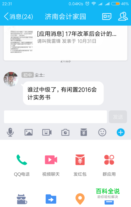 点击 右下角的“+”按钮,此时 底部会弹起 群的附属功能,我们点击“群应用”图标。
