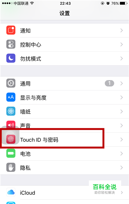 在设置选项中找到一个叫做Touch ID与密码的选项并点击进入到具体设置。