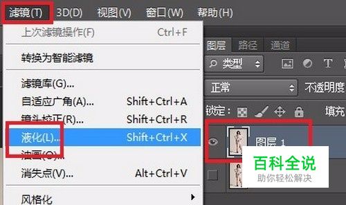 选中“图层1”,点击“滤镜”→“液化”