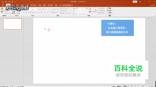 打开一个空白的PPT,在上方的菜单栏中点击“插入”按钮,插入想要抠图的文件。