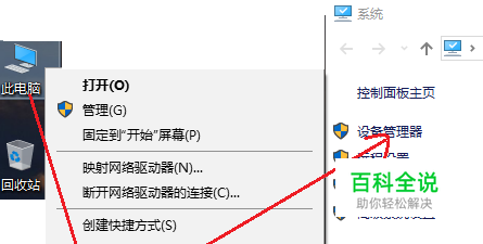 打开设备管理器。 步骤依次是:此电脑—属性—设备管理。