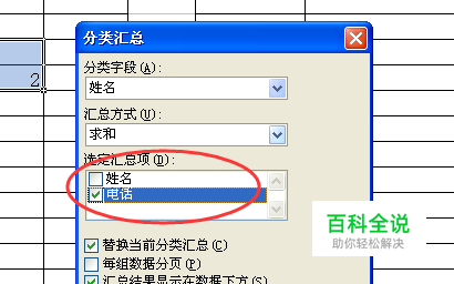 以什么来进行分类就选择哪个,如图所示,以电话来进行分类。点击确定。