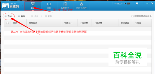 如果你要上传视频到爱奇艺,打开软件,点击添加,如图所示