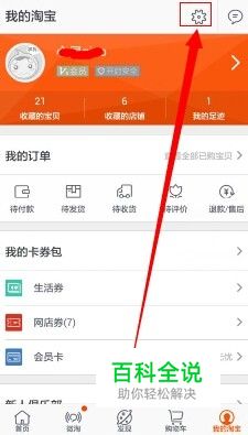 登录成功后在我的淘宝页面点击页面上方的“设置”按钮