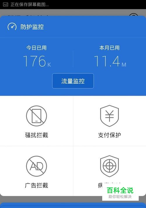 如果我们手机上有安装杀毒软件的话都可以操作,我们先打开杀毒软件,打开之后会出现如图所示,此时我们单击“防护监控”按钮。