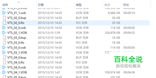 区分DVD中的主要媒体文件 前面说了,DVD有很多文件组成,我们并不需要转换全部的文件,只要找出其中的主要内容,其他的文件都可以忽略掉。 一般主要媒体文件都比较大,而且播放时长也更长,很容易区别。