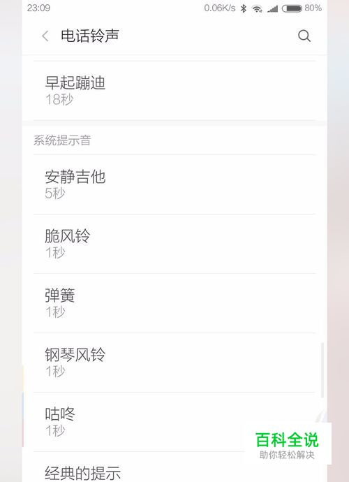 点电话铃声找到系统提示音。