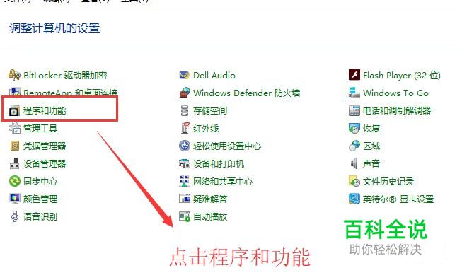 进入控制面板以后点击程序和功能选项,如下图所示,这里需要注意的是图标的显示位置各个电脑中会有差异