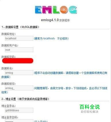 2、在浏览器上访问你的博客地址,程序会自动跳转到emlog安装页面,按照提示安装即可。 (注意,一般数据库地址和数据库前缀保持默认不需要修改,安装过程不会创建数据库,需要您事先创建好)