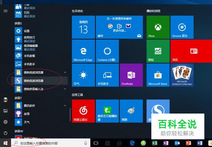 如图所示,拖动右侧垂直滚动条。点击"搜狗高速浏览器"项,用于访问无线路由器WEB管理页面。