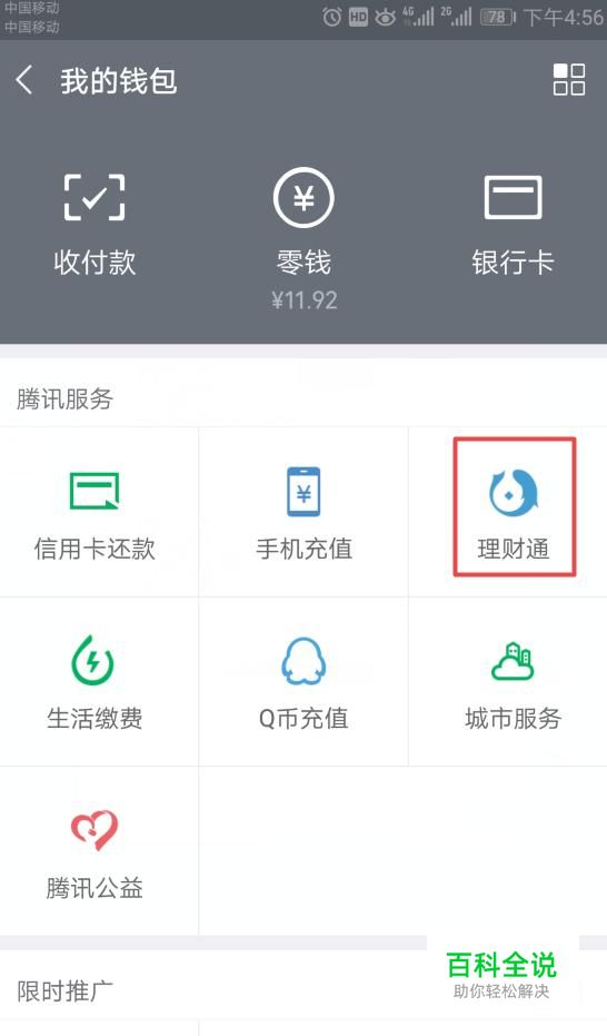 弹出的界面,我们点击理财通;
