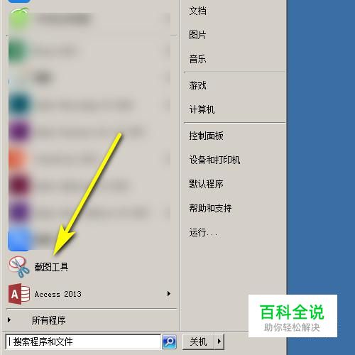 打开要截屏的屏幕;再点击电脑左下角的开始按钮。在弹出的菜单中选中:截图工具