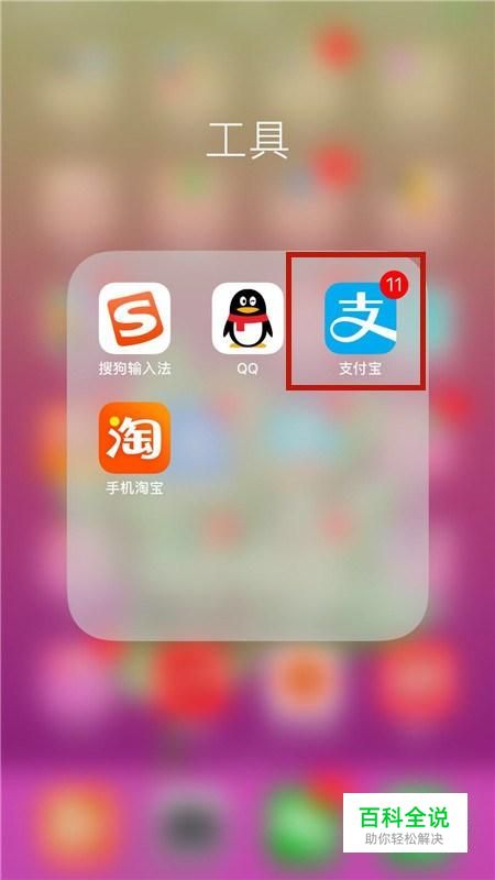 首先在我们的手机桌面上找到支付宝并点击它,如下图所示。