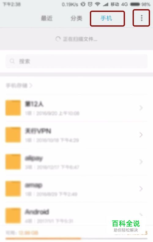点击页面最上面【最近】【分类】【手机】中的【手机】后,右上角会出现竖向的3个点