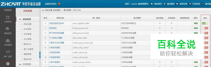 zhcart系统是带有后台发邮件的功能的,比如下订单自动发邮件、会员注册发邮件、订单发货通知、商品到货通知等等。 先找到“系统配置”--> “任务中心”--> “事件管理”找到你需要的邮件通知事件,看看是否有开启喔,如下图第二步到“系统配置”--> “网站设置(后期可能会移到“站点语言”)”--> “邮箱设置”,这里进行设置相关的发送邮箱的账号,如下图: 第三步到“推广运营”--> “网站运营”-->“邮件模板”,这里进行邮件内容的设置,需要注意的是一些参数类的不建议客户去修改,如下图: