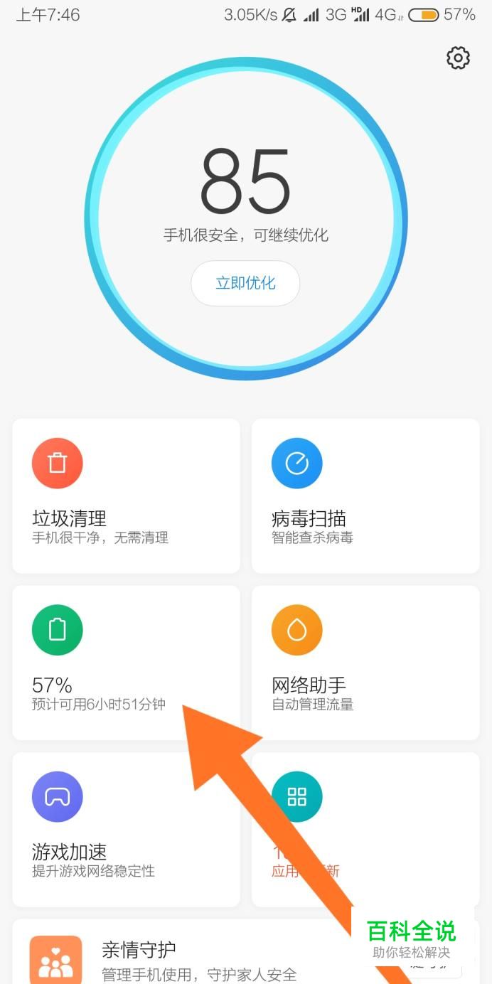 进入“安全中心”界面后,点击进入电量管理功能选项。