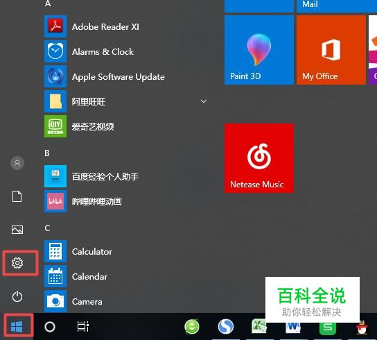 首先,我们点击电脑桌面左下角的微软按钮,弹出的界面,我们点击设置;