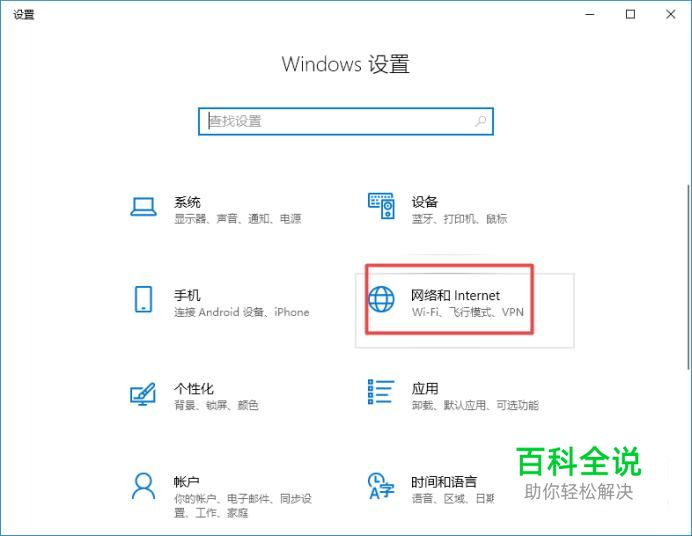 弹出的界面,我们点击网络和Internet;