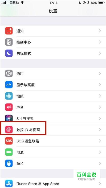 然后点击触控id与密码,如下图所示。