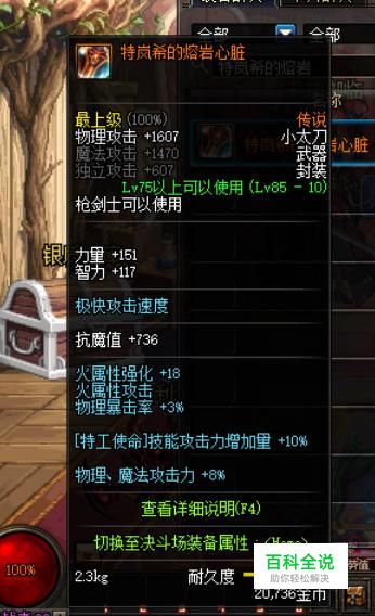 由于目前版本的换装BUFF体系,所以我们可以选择85级的传说小太刀“特岚希的熔岩心脏”作为换装武器,能够提升特工BUFF技能【特工使命】10%的技能攻击力增加量。