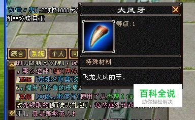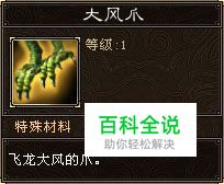 方法二:幸运快活三活动奖励 在苏州柳月虹处有几率抽取大风爪、大风翼、大风牙。玩家凑齐2套共6个物品后,便可以兑换超级拉风坐骑——“大风”一只。兑换成功大风会有系统滚屏公告。