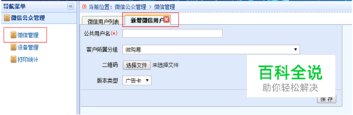 选择微管理——新增,填写公众用户名,上传二维码,注意用户名可以不同于您的公众号相一致。