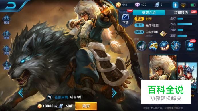 蓝色铭文搭狩猎 增加移速和攻速,使成吉思汗的支援能力加强了。