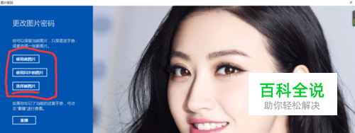 设置“ 图片密码”:点击“ 更改”,进去之后,在弹出“ 更改图片密码”中,输入你的Windows账号密码,确定之后,左上角会有3个选项。